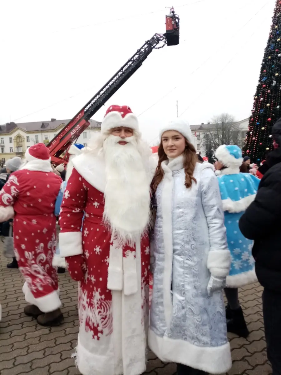 Без снега, но с отличным настроением! 20 декабря в Борисове состоялось яркое и традиционное шествие Дедов Морозов и Снегурочек. Около ста пар главных новогодних волшебников собрались у Дворца культуры имени М. Горького, чтобы подарить горожанам и гостям города атмосферу праздника. Среди участников шествия были и представители нашего учреждения: в образе Деда Мороза выступил учитель физической культуры Костюкевич В.В., а роль Снегурочки блестяще исполнила ученица 11 класса Курто Арина.