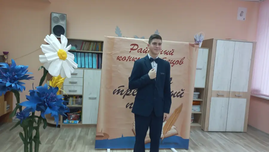 - Вячеслав Павлович, ученик 10 "А" класса, стал призёром в номинации Д1 (старшая возрастная группа — 15–18 лет). Его выступление отличалось зрелой интонацией, глубоким проникновением в образ и выразительной пластикой. Наставник — Берент С.Ф.