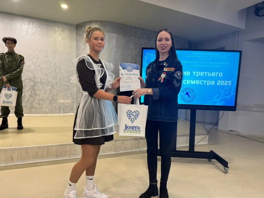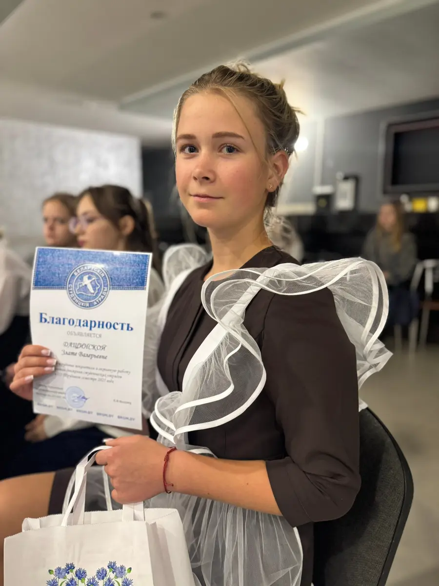 Сегодня во Дворце культуры состоялось торжественное мероприятие, посвящённое подведению итогов работы студенческих отрядов в летний период 2025 года. В зале собрались активные бойцы студотрядов, представители принимающих организаций, а также учащиеся школ — те, кто внёс свой вклад в успехи трудового семестра. Среди участников мероприятия была и ученица 10 «А» класса нашей гимназии — Дащинская Злата.